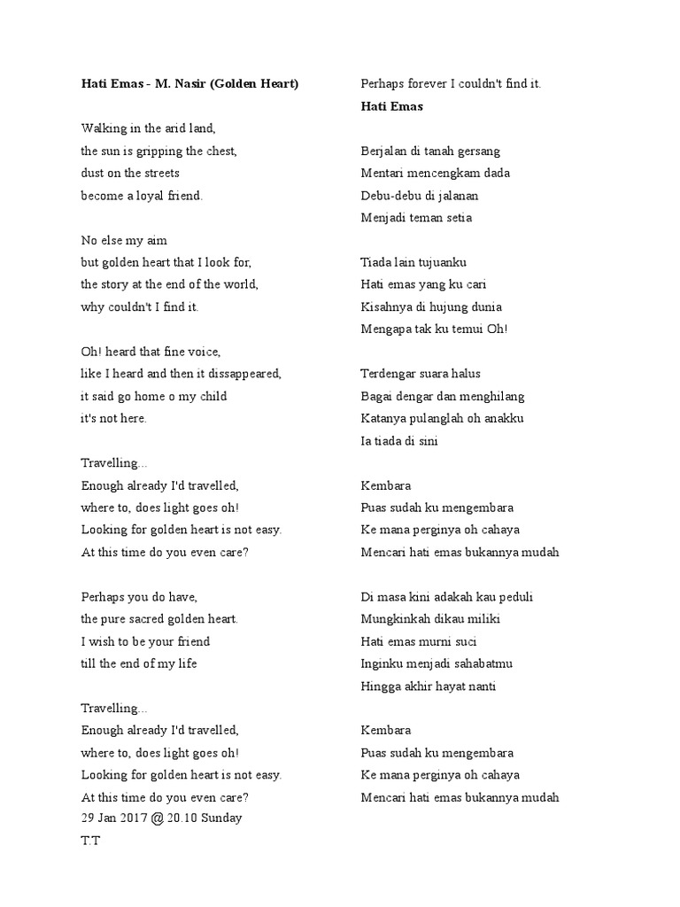 Hati Emas M Nasir Golden Heart Lyric Translation Pdf